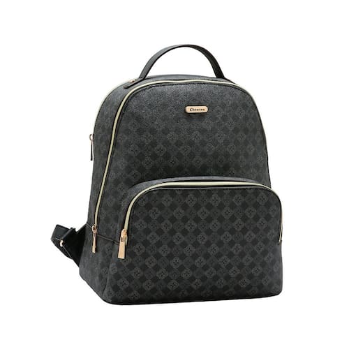 DESCRIÇÃO DO PRODUTO Modelo: Mochila Elemento Gráfico Marca: Chenson Material: Poliuretano impermeável Cor: Preto Fechamento: Zíper Formato: Mochila estruturada