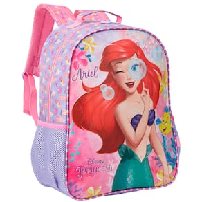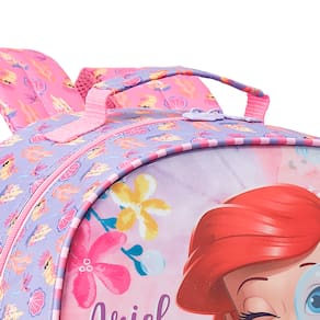 A mochila Ariel é a escolha perfeita para meninas cheias de imaginação. Com um design de bolso único espaçoso, acabamento em listras coloridas e estampa exclusiva traz a magia do fundo do mar para o dia a dia.Detalhes EspeciaisPuxadores Personalizados: Em Metal pintado, os puxadores de zíper são personalizados com um design exclusivo, oferecendo um toque único à mochila.Bolsos Laterais: Perfeitos para armazenar garrafas de água, guarda-chuvas ou pequenos itens de acesso rápido.Alças Ajustáveis e Acolchoadas: Garantem conforto durante o uso prolongado, adaptando-se facilmente a diferentes tamanhos de usuário.Técnica frontal: PVC + Glitter aplicado.Alça de mão: tira de poliéster forrado com nylon.Material:Poliéster 420DDIMENSÕES:- Largura: 30cm- Altura: 40cm- Comprimento: 15cmPESO: 300gr