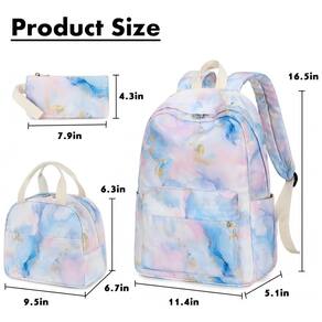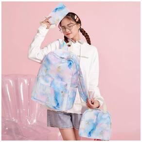 Modelo: Mochila escolar juvenil 3 peças mármore rosa azul roxo dourado
