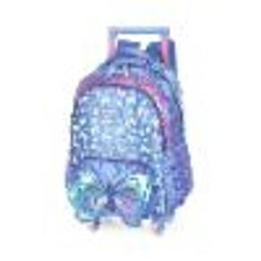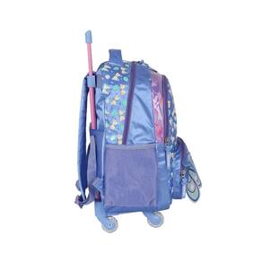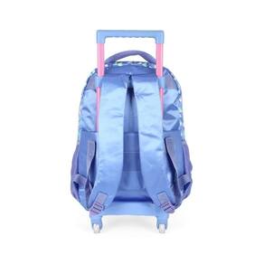 - bolsos frontal com zíper. - bolsos laterais. - alça de mão na parte superior - material: 100% poliéster. - alça de costas espumadas. - com 4 rodas com led, giro 360 graus.