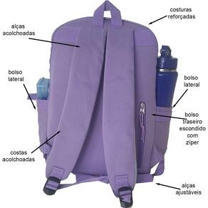 Compartimentos Organizadores: Esta mochila inclui vários compartimentos e bolsos para ajudar os estudantes a manterem seus pertences organizados. São eles: bolsos laterais para garrafinhas, bolso traseiro com ziper e bolsos frontais com zíper.