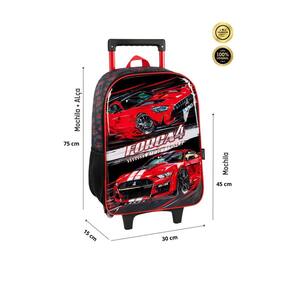 Design: Inspirado nos carros do Força 4, cores vibrantes e detalhes incríveis. Funcionalidade: Rodinhas resistentes, alças ajustáveis, compartimentos espaçosos e bolso frontal. Material: Resistente à água e fácil de limpar.