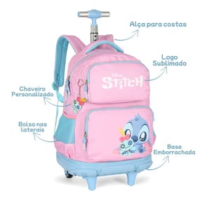 Mochila Escolar com Rodas Stitch Disney Meninas Juvenil - Luxcel
