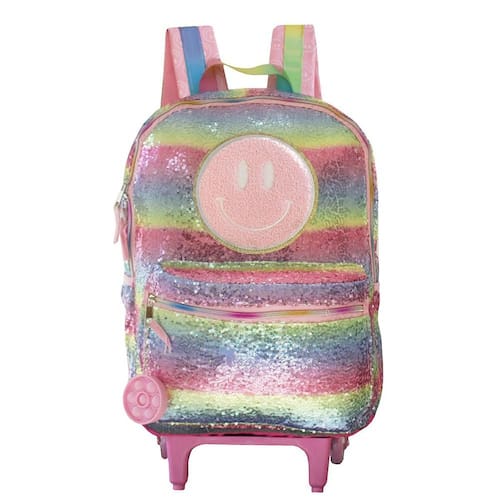 A Mochila Escolar De Rodinhas Smile Peluciado Chaveiro Pop It é perfeita para acompanhar as meninas no dia a dia escolar ou em aventuras divertidas. Com um design prático e funcional, ela combina durabilidade e estilo, garantindo resistência e longa vida útil.