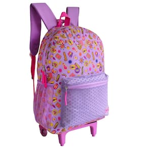 A estampa colorida dessa mochila adiciona um toque mágico e traz um brilho especial ao visual. As rodinhas facilitam o transporte, aliviando o peso nas costas, enquanto a alça retrátil oferece maior conforto ao puxá-la.