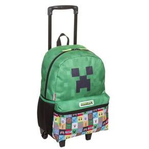 Os personagens Creeper e pixels com elementos característicos do jogo, estampam essa Mochila Escolar com Rodinhas Minecraft, no tamanho Grande, da Sestini.