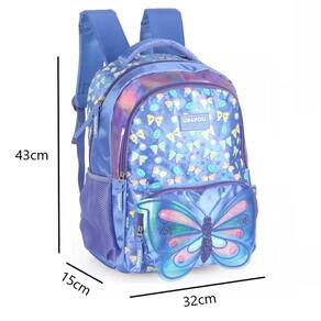 Mochila De Costas Infantil Borboleta 3d Up4you Esta mochila é ideal para o uso escolar ou passeios, apresenta um design encantador com estampa de borboletas, oferecendo um toque de alegria e cor ao dia a dia. A mochila é confeccionada em poliéster resistente e conta com alças espumadas e ajustáveis, garantindo conforto para transportar seus pertences. O bolso frontal com zíper e os bolsos laterais em tela com elástico são práticos para organizar objetos menores e garrafas de água. Características da Mochila Escolar: - 1 Bolso Principal com bastante espaço - 2 Bolsos frontais com fechamento em zíper - 2 Bolsos laterais para squeeze - Alças e costas acolchoadas e ajustáveis - Alça de mão reforçada na parte superior - Taggy identificação - Puxadores personalizados - Material: 100% Poliéster Dimensões da Mochila Escolar: Altura: 43 cm Largura: 32 cm Profundidade: 15 cm Conteúdo: - 1 Mochila
