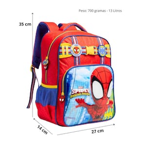 Mochila escolar spidey 14 - diversão, conforto e organização com o herói mais querido da garotada Ideal para acompanhar os pequenos no dia a dia escolar, essa mochila une funcionalidade e um visual encantador inspirado no universo do spidey. Perfeita para quem quer levar os materiais com praticidade e muito estilo. A frente em pvc patch com espuma proporciona textura macia e acabamento moderno, enquanto os patches emborrachados e o cadarço listrado adicionam detalhes criativos e únicos. As alças de ombro são acolchoadas e estampadas, garantindo conforto extra, e os bolsos laterais em mesh oferecem espaço para garrafinhas ou pequenos objetos. Os puxadores emborrachados personalizados e o zíper tratorado garantem durabilidade no uso diário. Produzida em poliéster resistente, essa mochila licenciada oficial marvel é perfeita para os pequenos fãs do spidey viverem grandes aventuras dentro e fora da escola - frente em pvc patch com espuma; - patches emborrachados aplicados; - cadarço listrado decorativo; - alça de mão acolchoada; - alças de ombro estampadas e confortáveis; - bolsos laterais em mesh; - puxadores emborrachados personalizados; - zíper tratorado; - material: poliéster Dimensões: - largura: 27cm - altura: 35cm - comprimento: 14cm Peso: 320gr Cuidados: - guarde em um local seco e arejado evitando locais úmidos. - evite colocar excesso de peso no produto para não forçar os zíperes e costuras. - proteja os objetos cortantes e/ou pontiagudos evitando o contato direto com o produto. - evitar altas temperaturas. - cores claras poderão manchar quando em contato com outros objetos ou roupas de cores pigmentadas.