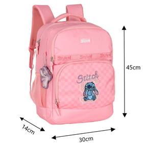 Mochila de Costas Luxcel Stitch Rosa   Desperte seu espírito aventureiro com a Mochila Escolar de Costas Stitch Disney – Lançamento Exclusivo!   Perfeita para os fãs do adorável alienígena Stitch, esta mochila combina estilo e funcionalidade com um toque divertido e moderno.    Fabricada em material resistente, garante durabilidade para acompanhar a rotina intensa dos estudantes. Seu compartimento principal espaçoso permite guardar livros, cadernos, estojos e outros materiais escolares com organização e segurança. Além disso, conta com bolsos laterais ideais em tela para garrafinhas e bolso frontal com zíper para pequenos objetos.   As alças acolchoadas e ajustáveis proporcionam mais conforto no transporte, enquanto o formato ergonômico distribui melhor o peso nas costas. É ideal para escola, passeios e outras atividades do dia a dia.   Características da Mochila Escolar: - 1 Bolso Principal com bastante espaço - 2 Bolsos Frontais com fechamento em zíper - 2 Bolsos laterais para squeeze - Alças de costas acolchoadas e ajustáveis - Alça de mão reforçada na parte superior - Puxadores personalizados - Material: 100% Poliéster - Forro: 100% Poliéster   Dimensões da Mochila Escolar: Altura: 45 cm Largura: 30 cm Profundidade: 14 cm   Conteúdo: - 1 Mochila