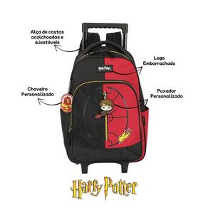 Características: - Estampa oficial e exclusiva do Harry Potter - Rodinhas resistentes e puxador retrátil para facilitar o transporte - Alças acolchoadas para opção de uso nas costas - Compartimentos amplos para organização dos materiais escolares - Puxador grande emborrachado - Chaveiro Personalizado