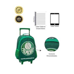 Mochila de Rodinhas Avante, , na mochila do seu pequeno palmeirense A mochila de rodinhas do é perfeita para os pequenos verdinhos que amam o futebol e querem levar a paixão para a escola. Com um design exclusivo e funcional, ela é ideal para transportar livros, cadernos e materiais escolares com conforto e estilo. Principais características: Design oficial do : A mochila possui o brasão do clube, mostrando a paixão pelo Verdão. Rodinhas: Facilitam o transporte e ajudam a proteger as costas. Zíper resistente: Garante maior durabilidade e segurança. Frente com brasão: Demonstra o orgulho de ser palmeirense. Grande e espaçosa: Ideal para guardar todos os materiais escolares. Lateral para garrafinha: Mantém a bebida sempre à mão. Por que escolher essa mochila Estilo e funcionalidade: Combina o design do com a praticidade de uma mochila com rodinhas. Perfeito para presente: Ideal para presentear os pequenos torcedores do em qualquer ocasião. Prática: Fácil de limpar e transportar. Durabilidade: Zíper resistente e material de alta qualidade garantem longa vida útil. Ideal para: Meninos e meninas torcedores do : Um presente perfeito para encantar os pequenos verdinhos. Dia a dia escolar: Ideal para levar os materiais escolares para a escola com estilo e conforto. Viagens e passeios: Perfeita para transportar os pertences em viagens curtas. Medidas: Altura: 40 cm com a alça abaixada e 75 cm com ela levantada Largura: 30 cm Profundidade:15 cm CUIDADOS: -guarde em um local seco e arejado evitando locais úmidos. - Evite colocar excesso de peso no produto para não forçar os zíperes e costuras. - Proteja os objetos cortantes e/ou pontiagudos evitando o contato direto com o produto. - Evitar altas temperaturas. - Cores claras poderão manchar quando em contato com outros objetos ou roupas de cores pigmentadas. DICAS DE LIMPEZA: - Para a limpeza utilize apenas pano úmido com sabão neutro. - Não deixar de molho e secar a sombra. Mochila , mochila de rodinha , mochila escolar , mochila infantil , mochila personalizada , mochila com zíper, mochila com zíper resistente, mochila com design personalizado, mochila escolar, mochila com rodinhas, mochila infantil, mochila para menino, mochila para menina, mochila com brasão do , mochila grande, mochila espaçosa, mochila para futebol, mochila para torcedor, mochila para escola, mochila para material escolar, mochila para viagem curta, mochila resistente, mochila durável, mochila para o dia a dia, mochila para a escola, mochila para a creche, mochila para o jardim de infância, mochila para o maternal, mochila com cursor personalizado, mochila acolchoada, mochila ideal para crianças, mochila para voltar às aulas, mochila oficial , mochila com lateral para garrafa.