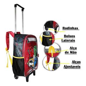 A mochila possui rodinhas, facilitando o transporte de materiais pesados. Além disso, é produzida com material resistente e confortável, garantindo alta durabilidade. Seu compartimento principal é espaçoso o suficiente para acomodar cadernos, livros e acessórios, e ainda conta com bolsos laterais para garrafinhas de água.