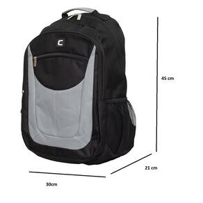 Confeccionada em poliéster, a mochila possui alça de mão e alças de costas acolchoadas com regulagem, lhe possibilitando mais conforto e comodidade no transporte.