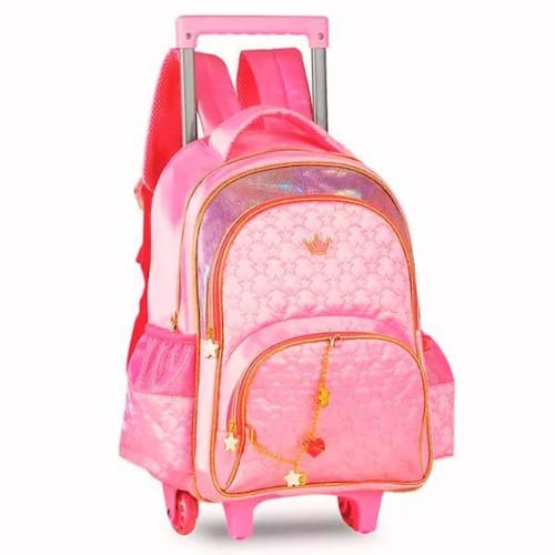 Mochila Mochilete Rosa Feminina Escolar Troller 2 em 1 Alças Rodinha Tamanho Grande