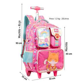 Mochila escolar com rodinhas 17 t tween gato confetti 2 - diversão e praticidade para o dia a dia escolar A mochila escolar com rodinhas tween gato confetti 2 é perfeita para quem ama estilo e praticidade em cada detalhe com design exclusivo e visual encantador, ela traz o charme do gatinho confetti em uma proposta moderna e funcional para acompanhar a rotina escolar com leveza e personalidade. Seu bolso frontal em pvc com confetes soltos cria um efeito visual divertido, enquanto os puxadores emborrachados personalizados e o zíper tratorado garantem durabilidade e facilidade no uso. O carrinho com haste única e rodinhas em gel proporciona deslocamento suave, ideal para os dias mais corridos. Produzida em poliéster resistente e com acabamento caprichado, essa mochila une conforto, estilo e versatilidade para tornar o dia a dia muito mais leve e alegre. - acompanha chaveiro; - zíper tratorado; - puxadores emborrachado personalizados; - carrinho com haste única e rodinhas em gel; - alça de ombro estampadas; - bolso frontal em pvc confetes soltos; - logo emborrachado; - alça de mão acolchoada; - cadarço listrado; - material: poliéster Dimensões: - largura: 32cm - altura: 43cm - comprimento: 15cm Peso: 1600gr Cuidados: - guarde em um local seco e arejado evitando locais úmidos. - evite colocar excesso de peso no produto para não forçar os zíperes e costuras. - proteja os objetos cortantes e/ou pontiagudos evitando o contato direto com o produto. - evitar altas temperaturas. - cores claras poderão manchar quando em contato com outros objetos ou roupas de cores pigmentadas. Dicas de limpeza: - para a limpeza utilize apenas pano úmido com sabão neutro. - não mergulhar na água e não utilizar componentes químicos, solventes ou alvejantes. - não deixar de molho e secar a sombra. Marca: Não Informado