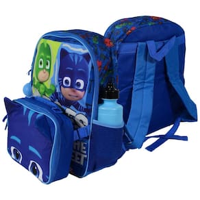 CONJUNTO DE MOCHILA DE 4 PEÇAS PJ MASKS PARA CRIANÇAS Este conjunto de mochila PJ Masks é essencial para VOLTAR À ESCOLA. O conjunto inclui uma mochila de com bolso frontal com zíper e apresenta todos os três PJ Mask Super Heroes Catboy, Gekko e Owlettte, uma lancheira 3D Cat Boy destacável, uma garrafa de água e uma bola de inquietação mole. MOCHILA DE A mochila tem um compartimento principal para livros, pastas, fichários, tablets e cadernos, um bolso frontal com zíper, 2 bolsos laterais de malha de nylon e uma alça superior com presilha. Possui costas acolchoadas e alças ajustáveis acolchoadas com reforço de rede pp para maior resistência, conforto e ajuste. Mede 40 x 30 x . CAIXA DE ALMOÇO ISOLADA A lancheira destacável 3D legal apresenta Catboy. Possui isolamento de espuma e forro impermeável PEVA para manter os alimentos frescos durante todo o dia na escola ou em viagens Marca: Não Informado