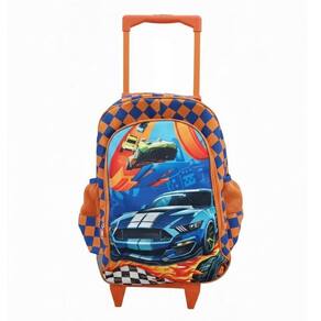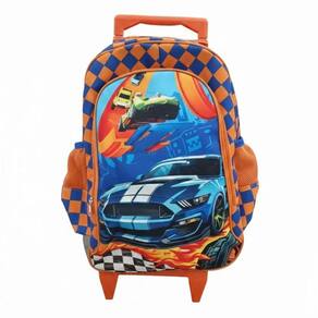 Mochila Escolar Infantil com Rodinhas Hot Wheels Laranja - GV Bolsas