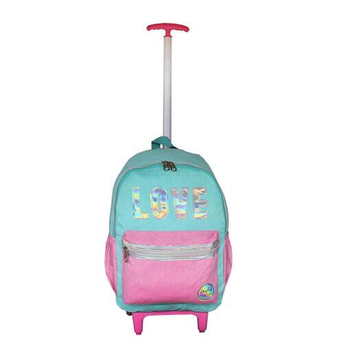 Mochila Escolar Rodinhas Love Juvenil Denlex Holográfica