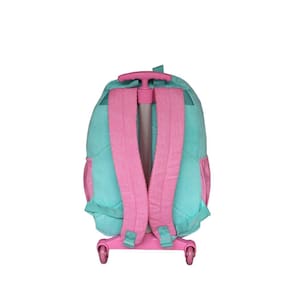 - Mochila de rodinhas de silicone rígido, maior durabilidade. - Alça de transporte reforçada com dupla costura. - Zíper personalizado dando um destque a mais na mochila. - Estampa com escrita holográfica e glitter dando um charme a mais na mochila, pois ela fica brilhante. - Bem espaçosa e com 2 bolsos, sendo um principal para colocar livro, cadernoa, apostilas e um outro bolso frontal para colocar itens menores. - 2 Bolsos laterais para colocar garrafa de água, suco ou refrigerante. - Mochila linda, sua filha vai amar.