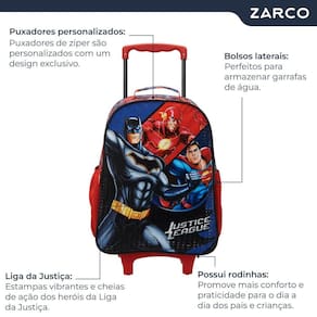 Mochila escolar infantil de rodinhas 16 dc criança heróis liga da justiça xeryus Cor: azul/vermelho Liberte o super-herói que existe em seu filho com a mochila escolar liga da justiça da xeryus perfeita para os pequenos fãs de batman, superman e seus amigos, essa mochila combina estilo, funcionalidade e qualidade, tornando o dia a dia escolar uma verdadeira aventura. A xeryus, renomada por seus produtos infantis de alta qualidade e design moderno, criou uma mochila que vai encantar os meninos e tornar a rotina escolar ainda mais divertida. A mala com rodas da liga da justiça é simplesmente espetacular ideal para meninos que adoram aventuras e super-heróis, esta mala combina estilo e funcionalidade. Com seus personagens favoritos, flash, batman e super homem, estampados na frente em pvc reticulado, ela não só é resistente, mas também incrível. As rodinhas em gel e as hastes de metal garantem um transporte fácil e confortável. É a escolha perfeita para qualquer pequeno herói que deseja levar sua paixão pela liga da justiça para a escola ou passeios. Principais características: . Estampa da liga da justiça: com estampas vibrantes e cheias de ação dos heróis da liga da justiça, a mochila traz todo o universo dc comics para a rotina escolar; . Puxadores personalizados: em metal pintado, os puxadores de zíper são personalizados com um design exclusivo, oferecendo um toque único à mochila; . Bolsos laterais: perfeitos para armazenar garrafas de água, guarda-chuvas ou pequenos itens de acesso rápido; . Possui rodinhas: o carrinho promove mais conforto e praticidade para o dia a dia dos pais e crianças. Feito de metal pintado e hastes arredondadas, possui travas de altura, 2 rodas em gel e freio frontal; . Possui 4 bolsos: com diversos compartimentos, a mochila oferece espaço de sobra para organizar todos os materiais escolares, lancheira e até mesmo um tablet. Especificações: . Marca: xeryus; . Modelo: mala com rodas 16 liga da justica r2 - 13520 - artigo escolar; . Dimensões: altura - 40cm; largura - 30cm; profundidade - 15cm; . Material: poliéster 420d; . Quantidade de bolsos: 4 bolsos; . Peso: 800 gramas. Cuidados: . Guarde em local seco e arejado; . Para a limpeza do produto, utilize apenas pano úmido com sabão neutro; . Não imergir na água; . Não utilizar componentes químicos, solventes ou alvejantes; . Evitar colocar excesso de peso; . Proteja de objetos cortantes e/ou pontiagudos. a name=hlk177057846/aatenção: os produtos podem sofrer alterações de cores devido ao monitor. Vantagens de comprar na zarco br: . Envios em até 24 horas úteis: com a zarco br, seu pedido é processado rapidamente e enviado em até 24 horas úteis, garantindo agilidade e eficiência na entrega; . Produtos novos: cada item disponível é totalmente novo, assegurando que você receba um produto em perfeitas condições, sem uso prévio; . Produtos com : com a zarco br, seus produtos contam com oficial, oferecendo segurança e tranquilidade na sua compra.