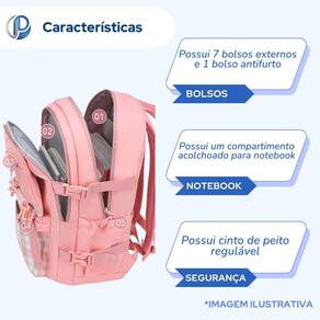Principais Características: 7 bolsos externos 1 bolso antifurto 2 bolsos internos Compartimento acolchoado para notebook Cinto de peito ajustável Capacidade: 23 litros Marca: Não Informado Ean: 7898975584150