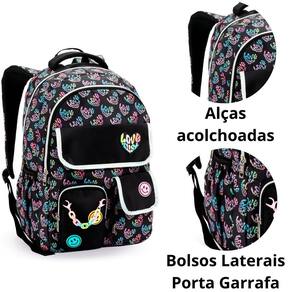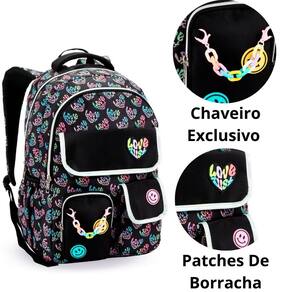 Característica; -Medidas:46cm x 31cm x 14,5cm -Puxadores Personalizados -Cinco Divisórias -Bolsos Laterais Porta Garrafa -Estampa Exclusiva Love Just -Patches De Borracha -Chaveiro Exclusivo -100%Poliéster