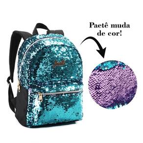 Mochila Escolar Juvenil Paetes Dupla Face Bolsa Feminina Muda De Cor Teen Denlex Cor: Azul/Lilás Mochila Escolar Juvenil Paetes Dupla Face Bolsa Feminina Muda De Cor Teen Denlex