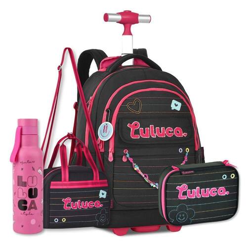 Se você busca estilo, praticidade e economia em um único kit, o Kit Escolar Completo Luluca é a escolha perfeita para começar o ano letivo com tudo Ideal para meninas modernas e organizadas, esse kit premium combina design encantador, funcionalidade e qualidade superior em cada detalhe. Agora o kit está ainda mais completo com a Garrafa Térmica LU1006, de 500ml. Feita com aço inoxidável e plástico PP, ela mantém a bebida quentinha ou gelada por até 8 horas. Uma escolha prática e estilosa para acompanhar as aventuras diárias das crianças, combinando com toda a exclusividade da coleção Luluca A Mochila de Carrinho LU24606 é um verdadeiro destaque: espaçosa, versátil e repleta de recursos que tornam a rotina mais prática e organizada. Com duas opções de uso carrinho ou costas , ela conta com alças ajustáveis, proteção para as rodinhas e compartimentos amplos, incluindo divisória acolchoada para notebook. Além disso, os detalhes em matelassê colorido, patches atoalhados e chaveiro de miçangas trazem um toque exclusivo ao visual. A Lancheira Térmica LU24608 mantém os lanches fresquinhos e organizados com muito estilo. Seu revestimento térmico, alça carona e alça de ombro ajustável garantem praticidade no transporte e combinam perfeitamente com a mochila. Já o Estojo Box LU24607 é compacto e funcional, ideal para manter todos os materiais bem organizados. Com espaço para até 36 lápis, divisórias internas e fechamento por zíper, ele complementa o kit com charme e praticidade. Adquirir o kit completo é muito mais vantajoso do que comprar os itens separadamente. Além de economizar, você garante um conjunto que combina perfeitamente entre si e destaca o estilo único da sua menina. Não deixe essa oportunidade passar - transforme a volta às aulas em um momento ainda mais especial