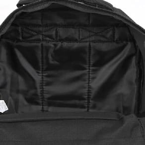 Confeccionada em poliéster, a mochila possui alça de mão e alças de costas acolchoadas com regulagem, lhe possibilitando mais conforto e comodidade no transporte.