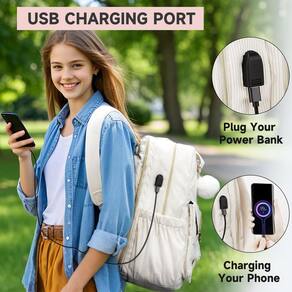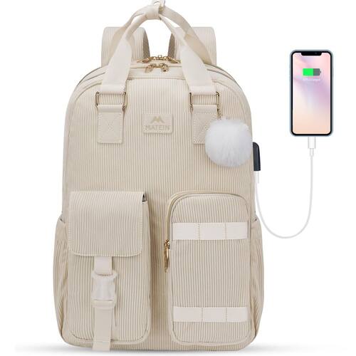 Característica: MATEIN mochila feminina para laptop é feita de material de veludo cotelê macio e confortável, o que a torna perfeita para usar o dia todo. O pingente de pelúcia adiciona um toque fofo à mochila de computador do campus, enquanto a cor bege neutra complementa qualquer roupa. Ideal como uma mochila acolchoada do dia a dia para mulheres, faculdades, enfermeiros, professores e designers. Tamanho: 43 x 30 x 23 cm. O compartimento separado para laptop da linda mochila feminina mantém seu laptop de 15,6 polegadas, iPad de 12,9 polegadas ou outros dispositivos eletrônicos seguros. O compartimento principal com bolsos e chaveiro para seus itens essenciais do dia a dia. Dois bolsos frontais são perfeitos para guardar papelaria, caixa de talheres, mouse, caderno pequeno, etc. O compartimento TSA para laptop permite que você passe pelos pontos de controle de segurança do aeroporto de forma rápida e fácil acesso ao seu laptop durante a viagem. Mochila feminina para faculdade com porta de carregamento USB e cabo integrado facilita carregar seu telefone enquanto caminha ou anda. A alça de bagagem permite que você prenda a mochila de computador kawaii à sua bagagem, reduzindo a tensão em seus ombros. As alças de ombro de malha respirável fornecem suporte extra. Mochila feminina para laptop por muito tempo para o trabalho não vai desgastar você. Ideia de presente perfeita para irmãs, filhas, namorada, esposa, amigas, professores, enfermeiras na formatura, aniversário, dia das mães, dia dos namorados, Natal e outros festivais, etc. - Design bonito e elegante: a mochila para laptop MATEIN é feita de material de veludo cotelê macio e confortável, tornando-a perfeita para uso diário ou viagens. O chaveiro destacável de pompom adiciona um toque fofo à mochila de computador do campus, enquanto a cor bege neutra complementa qualquer roupa. A linda mochila feminina para escola com alças de transporte é elegante e moderna, facilitando o transporte de mochila formal em diferentes ocasiões. Ideal como uma mochila de veludo cotelê para adolescentes, estudantes, enfermeiras, professoras - Espaçosa e organizada: o tamanho da linda mochila para meninas é: 43 x 30 x 23 cm. A mochila de veludo cotelê com compartimento separado para laptop mantém o laptop de 15,6 polegadas ou outros dispositivos eletrônicos seguros. O compartimento principal com bolsos e chaveiro para seus itens essenciais do dia a dia. 2 bolsos frontais são perfeitos para guardar papelaria, fone de ouvido, mouse, caderno pequeno, etc. 2 bolsos laterais são ideais para carregar garrafas de água de 850 g ou guarda-chuvas. O bolso antirroubo na parte traseira protege sua carteira e passaporte - Porta de carregamento TSA e USB: a mochila de viagem Matein para mulheres atende à maioria das restrições de tamanho de itens pessoais de companhias aéreas. A mochila de viagem infantil com compartimento para laptop TSA permite que você passe pelos pontos de controle de segurança do aeroporto de forma rápida e fácil acesso ao seu laptop durante a viagem. A mochila feminina com porta de carregamento USB e cabo integrado facilita carregar seu telefone enquanto caminha ou anda. A alça de bagagem permite que você prenda a linda mochila de laptop Kawaii à sua bagagem, reduz a tensão em seus ombros - Alta qualidade: a mochila escolar de veludo cotelê infantil é feita com tecido de veludo cotelê de alta qualidade e interior de poliéster resistente a rasgos. A mochila leve para laptop é agradável à pele, garantindo que dure por muitos anos. As alças de ombro de malha respirável fornecem suporte extra. Mochila feminina para laptop por muito tempo para o trabalho não vai desgastar você. Esta mochila estética feminina creme é versátil e funcional, tornando-a perfeita para voltar às aulas, faculdade, trabalho, enfermeira, uso diário ou viagens - Design para meninas e presentes ideais: presentes de volta às aulas para meninas universitárias. Lindo presente para filha da mãe. A linda cor creme desta bolsa feminina de moda básica para faculdade complementa qualquer estilo, enquanto o material de veludo cotelê bege adiciona um toque de sofisticação. A aparência moderna e única é projetada especificamente para meninas do ensino médio. Ideia de presente perfeita para neta, irmãs, namorada, crianças, adolescentes na formatura, aniversário, Dia das Mães, Dia de Ação de Graças