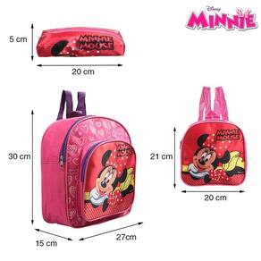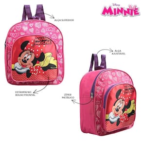 Kit Mochila Escolar Infantil Pequena da Minnie Mouse De Costas, acompanha lancheira e estojo. Possui alça de mão reforçada. Agora você pode levar sua mochila no seu dia a dia ou acompanhar você na escola. Sua abertura maior se dá por zíper com puxador. Na parte de dentro possui espaço para a guardar diversos materiais como cadernos, livros e estojos. Na parte da frente, possui bolso com zíper para a guardar pertences de menor tamanho.