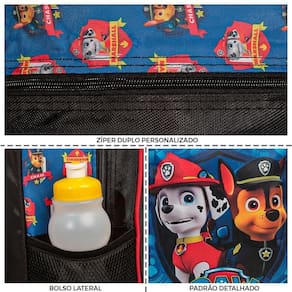 Kit Mochila Escolar Infantil Patrulha Canina De Costas, acompanha lancheira e estojo. Possui alça de mão reforçada. Agora você pode levar sua mochila no seu dia a dia ou acompanhar você na escola. Sua abertura maior se dá por zíper com puxador. Na parte de dentro possui amplo espaço para a guardar diversos materiais como cadernos, livros e estojos. Na parte da frente, possui bolso com zíper para a guardar pertences de menor tamanho e bolsos laterais.