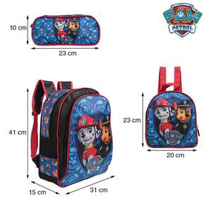 Kit Mochila Escolar Infantil Patrulha Canina De Costas, acompanha lancheira e estojo. Possui alça de mão reforçada. Agora você pode levar sua mochila no seu dia a dia ou acompanhar você na escola. Sua abertura maior se dá por zíper com puxador. Na parte de dentro possui amplo espaço para a guardar diversos materiais como cadernos, livros e estojos. Na parte da frente, possui bolso com zíper para a guardar pertences de menor tamanho e bolsos laterais.