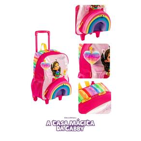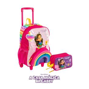 Mochila Escolar Rodas A Casa Mágica da Gabby Estojo Triplo