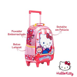 Mochila Escolar de Rodas Hello Kitty Pelúcia Meninas Infantil - Xeryus