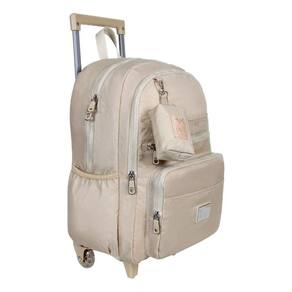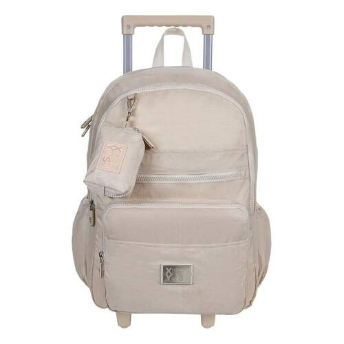 A Mochila Escolar Rodinhas Bege Trendy é a combinação perfeita de estilo e praticidade. Confeccionada em tecido crinkle, ela possui um design moderno que se destaca por sua funcionalidade.