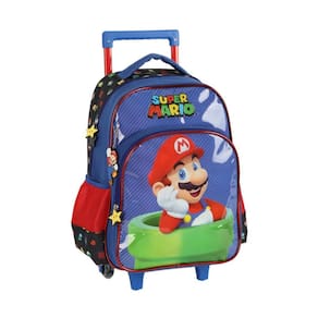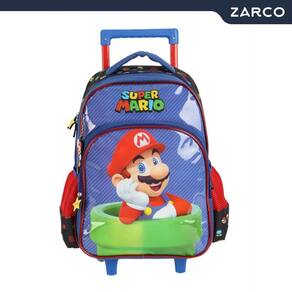 Mochila Escolar Rodinhas E Alça Super Mario Bros 4 Bolsos Pu