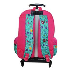 - bolsa rosa 01 bolso frontal para a portação de cadernos, livros ou itens maiores de sua preferência - bolsa vermelha 01 bolso frontal grande para a portação de itens maiores, 02 bolsos menores para a portação de itens menores. - zíper duplo