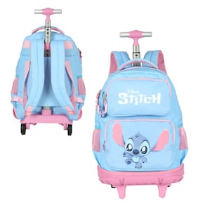Leve, prática e superfuncional, esta mochila escolar com rodinhas é perfeita para o dia a dia das crianças. Confeccionada em nylon resistente, garante maior durabilidade e suporte para transportar materiais escolares com conforto e segurança. O design encantador traz a estampa da Disney Stitch, com cores vibrantes em azul e rosa, além de puxadores de zíper personalizados que deixam o produto ainda mais divertido. Possui amplo compartimento principal para cadernos e livros, bolsos frontais com zíper para objetos menores e bolsos laterais em tela ideais para garrafinhas.