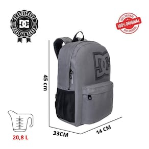 Design moderno e esportivo com a assinatura DC Shoes Bolsos organizadores para itens pessoais, canetas e acessórios Alças ajustáveis e acolchoadas para maior conforto Painel traseiro ventilado para conforto durante o uso prolongado Material resistente e impermeável, ideal para diferentes condições climáticas Perfeita para uso escolar, esportes e aventuras no dia a dia Medidas da mochila Altura 45 cm Largura 33 cm Profundidade 14 cm 20,8 litros Material poliester 900D
