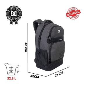 Design moderno e esportivo com a assinatura DC Shoes Bolsos organizadores para itens pessoais, canetas e acessórios Alças ajustáveis e acolchoadas para maior conforto Painel traseiro ventilado para conforto durante o uso prolongado Material resistente e impermeável, ideal para diferentes condições climáticas Perfeita para uso escolar, esportes e aventuras no dia a dia Medidas da mochila Altura 48 cm Largura 32 cm Profundidade 21 cm 32,3 litros Material poliester 900D