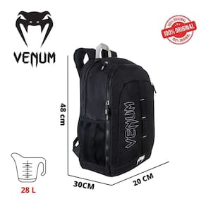 Design e marca: a mochila é da marca venum, famosa por sua linha de produtos para lutas e esportes de combate, conhecida pela alta qualidade e durabilidade. Seu design é moderno e funcional, com detalhes em cores vibrantes e o logotipo da marca, garantindo um visual esportivo e arrojado.