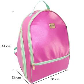 Mochila Esportiva Raqueteira Beach Tennis - Miellu Bolsas Cor: Pink A Mochila Esportiva Miellu é o acessório perfeito para jogadores apaixonados por esporte vibrante e empolgante. Com um design moderno e funcional, ela foi cuidadosamente projetada para atender às necessidades dos atletas, oferecendo amplo espaço e recursos práticos para transportar suas raquetes, equipamentos e pertences pessoais. Com uma capacidade de 32 litros, esta mochila permite que você leve tudo o que precisa para a quadra, mantendo-se organizado e preparado para suas partidas. O bolso térmico lateral é ideal para acomodar garrafa de água, permitindo que você se mantenha hidratado durante o jogo. Do outro lado, encontra-se um bolso com forro grande, que pode ser utilizado como porta tênis ou para roupa suja Saiba mais detalhes desse modelo abaixo: Características externas: Bolso térmico para garrafa de água e outros objetos; 1 bolso frontal com zíper; 2 bolsos laterais com zíper; Bolso lateral da mochila podendo ser para colocar calçados ou roupas sujas; Alças de ombro acolchoadas 1 compartimento grande para raquetes. Características Internas: Forrada com nylon resinado preto internamente, material resistente e leve, garantindo resistência e leveza a peça; 2 repartições na parte interna para facilitar a organização; Bolso na parte interna da tampa com zíper. Medidas aproximadas: Largura x Altura x Profundidade 30 cm x 44 cm x 24 cm Produto fabricado no Brasil Marca: Não Informado