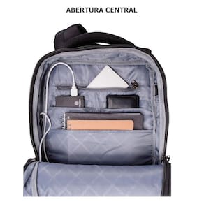 Journey Pro, a mochila Journey Pro traz inovações para quem gosta de praticidade, segurança, conforto e comodidade. Além do Sistema Antifurto Dual Zipper, da confecção em Poliéster 600D resistente à água e a cortes e do espaço para notebooks de até 15.6, a Journey Pro agora conta com alça de fixação em malas de viagens, bolso secreto, fecho peitoral regulável, porta com saída Usb, capa para chuva e alça com bolso para transporte de cartões. Tudo isso alinhado ao revestimento acolchoado e ergonômico que irá te manter arejado graças ao Air Flow System. Características: Marca: Posher Modelo: PBPJ15 PROBK Dimensões: 49 X 12 X 43 Peso: 0,92 Kg Capacidade: 25,284 L Cor: Café (Cf) ou Preto (Bk) Material: – Poliéster 600D, resistente à água e a cortes; Bolsos externos: 1 bolso frontal com zíper; 2 bolsos laterais extensíveis com zíper (seu espaço interno pode ser ampliado ao abrir o zíper); 1 bolso oculto antifurto com zíper das costas. Compartimentos com zíper: compartimento frontal com organizador interno; compartimento principal com amplo espaço, bolsos internos e passagem para fios de fone de ouvido; compartimento acolchoado para laptop de até 15,6. Segurança: compartimento principal com sistema antifurto patenteado dual zipper; 1 bolso oculto antifurto com zíper das costas; compartimento antifurto para laptop; argola para chaveiro. Conforto: Alças de costas acolchoadas e ajustáveis; encosto acolchoado com fluxo de ar em s. Sistema Antifurto Dual Zíper; Bolso secreto para transporte de documentos e objetos; Alça de fixação em malas de viagens; Alças acolchoadas com um compartimento para transporte de cartão; possui porta Usb externa com cabo de carregamento embutido (Carregador Portátil não Incluso); Costado acolchoado e ergonômico com Air Flow System; Porta chaves; Compartimento para Notebook de até 15.6; Acompanha capa para chuva.