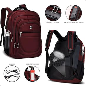 Mochila Executiva Grande Faculdade Trava Notebook Vermelho