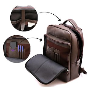 Ficha técnica - Gênero: Masculino - Material: Couro - Capacidade: 30L - Profundidade: 16cm - Quantidade de bolsas: 1 - Com compartimento para notebook: Sim - Desenho do tecido: Flother - Com saída para fone de ouvido: Não - Tipo de mochila: Urbano - Com bolso para garrafa: Não - Temporada de lançamento: Outono-inverno - É reforçada: Sim - Cor principal: Marrom-escuro - Com cinto de peito: Sim - Com cinto abdominal: Não - É à prova d'água: Não - Largura: 31cm - Ano de lançamento: 2021 - cor: marrom escuro - Com rodas: Não