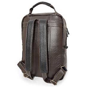 Características: - feita de couro macio e resistente - ferragens banhadas e resistentes - alças de costas com acolchoamento, reforçadas, macias e reguláveis - alça de mão reforçada - produto forrado e acolchoado - leve e espaçosa - modelagem slim, ideal para clientes que não querem carregar uma mochila muito ''volumosa'' - puxadores dos zíperes feitos de couro - produto resistente a chuva