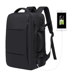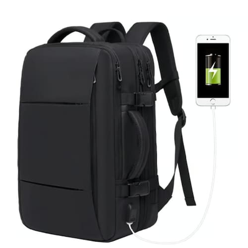 Características: PARTE EXTERNA - Design Funcional - Material Impermeável - Capacidade: Ajustável entre 24 e 45 Litros; - Bolsos Externos - Costura Reforçada com fino acabamento; - Saída USB com fechamento anti poeira - Bolso na alça de ombro para cartões e pequenos objetos; - Bolso secreto no costado para pequenos objetos como fones, carteiras, etc; - Alça Reforçada para Mão - Alça das Costas Ajustáveis com de 3 Camadas; - Alça no costado para fixação em alças de Malas de Mão; - Possui cintas laterais de segurança com regulagem; - Possui saída de ar no compartimento para calçados e roupas; - Abertura e Fechamento por Zíper duplos resistentes - Toda Mochila Possui Costuras Reforçadas Premium;