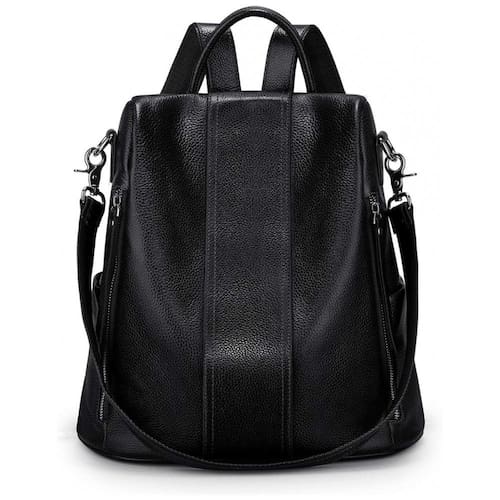 Mochila Feminina de Couro Conversível para Bolsa de Ombro, S ZONE, Preta - Branco - Regulável