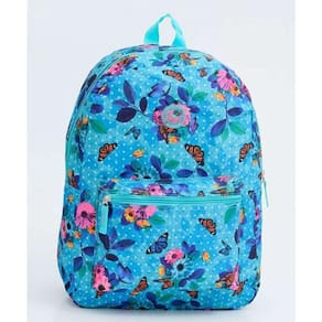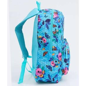 Mochila feminina confeccionada em material lona. Possui estampa flores, borboletas e poá, fechamento por zíper, repartição única, bolso frontal com fechamento por zíper, alça de mão, alças ajustáveis na parte de trás, acabamento e costura no tom. Medidas aproximadas: 42cm de altura29cm de comprimento12cm de largura Informações Adicionais:Tamanho: únicoCores: azulModelo: Mochila Feminina Estampa Flores ClioMaterial: TecidoDetalhes adicionais: zíper, mochila, flores, borboleta, poáMarca: Clio